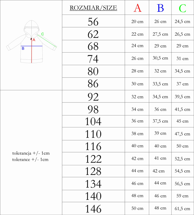 | Rozmiar | Obwód klatki piersiowej | Obwód pasa |