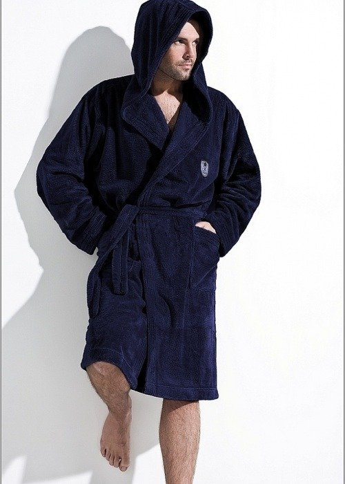 Szlafrok męski Iwo to doskonała propozycja dla aktywnych mężczyzn. Idealny na siłownię, basen itp.