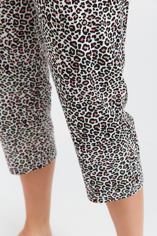 Do kompletu spodnie typu rybaczki ozdobione printem w panterkę