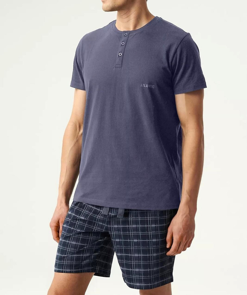 NMP-380 Piżama męska krótki rękaw, Atlantic- granatowy