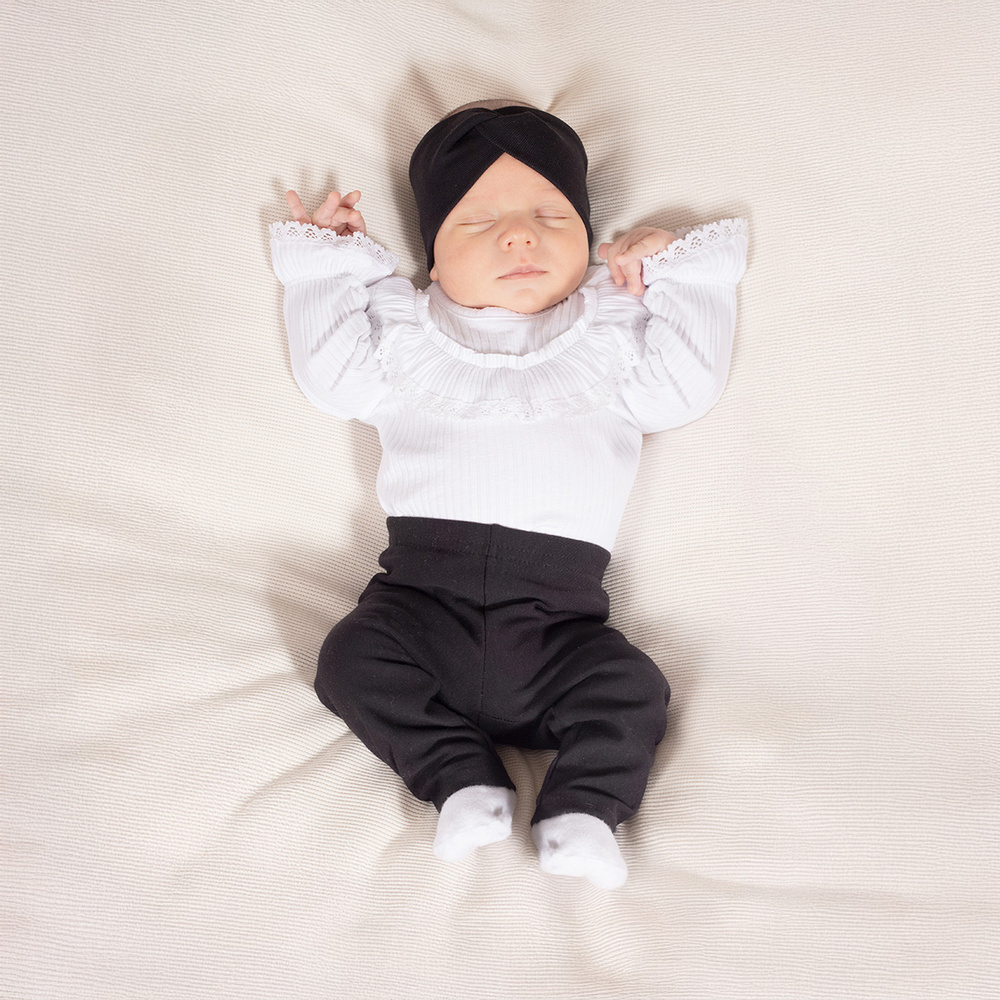 Body z długim rękawem dla dziewczynki, uszyte ze 100% bawełny. Materiał posiada certyfikat Oeko-Tex Standard 100 Tekstylia godne zaufania. Produkt zapinany na plecach i w kroku na bezniklowe napy, zapewniając komfort przy ubieraniu.