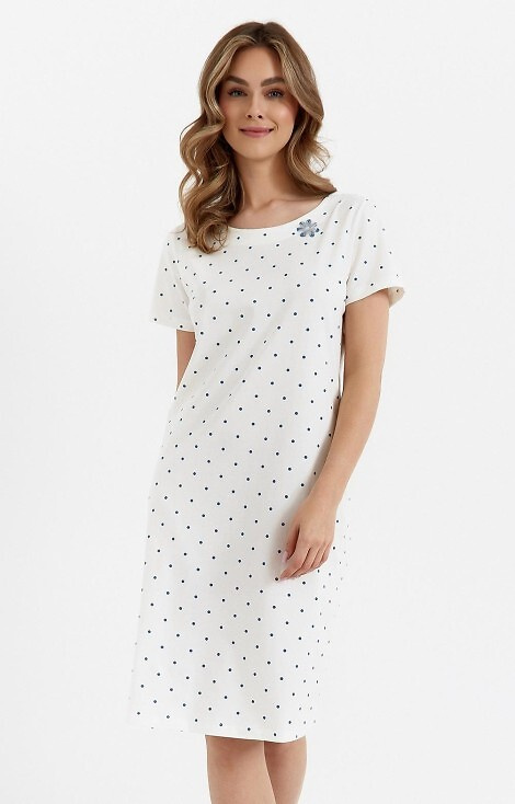 Koszula damska z krótkim rękawem wykonana z wysokiej jakości bawełny w kropki. Wyjątkowo miła dla skóry.