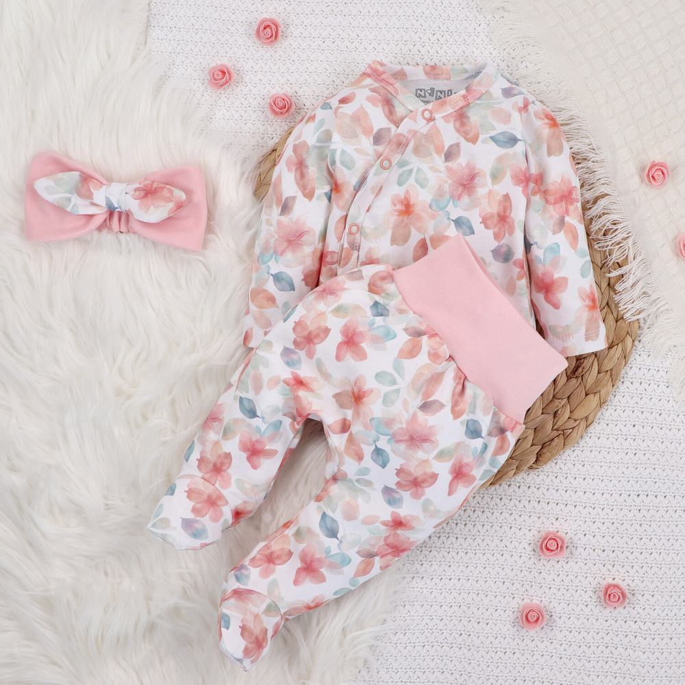 ABN-5411 Kolorowe Kwiatki Body kopertowe z długim rękawem Nini
