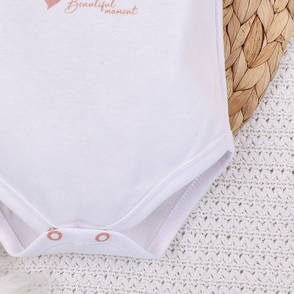 ABN-5418 Kolorowe kwiatki Body z krótkim rękawem z bawełny organicznej Nini biały