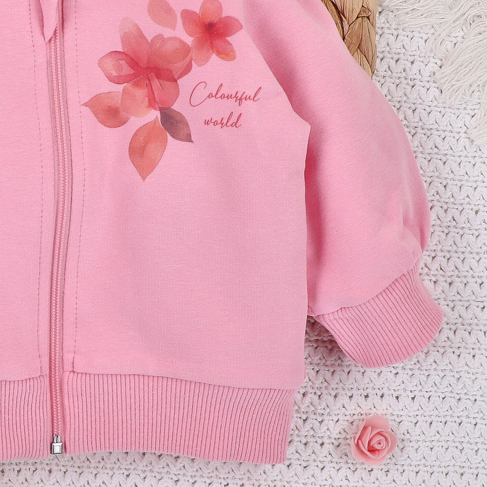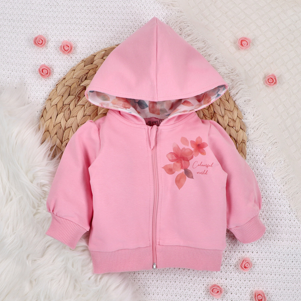 ABN-5430 Kolorowe kwiatki Bluza dresowa z bawełny organicznej Nini różowy