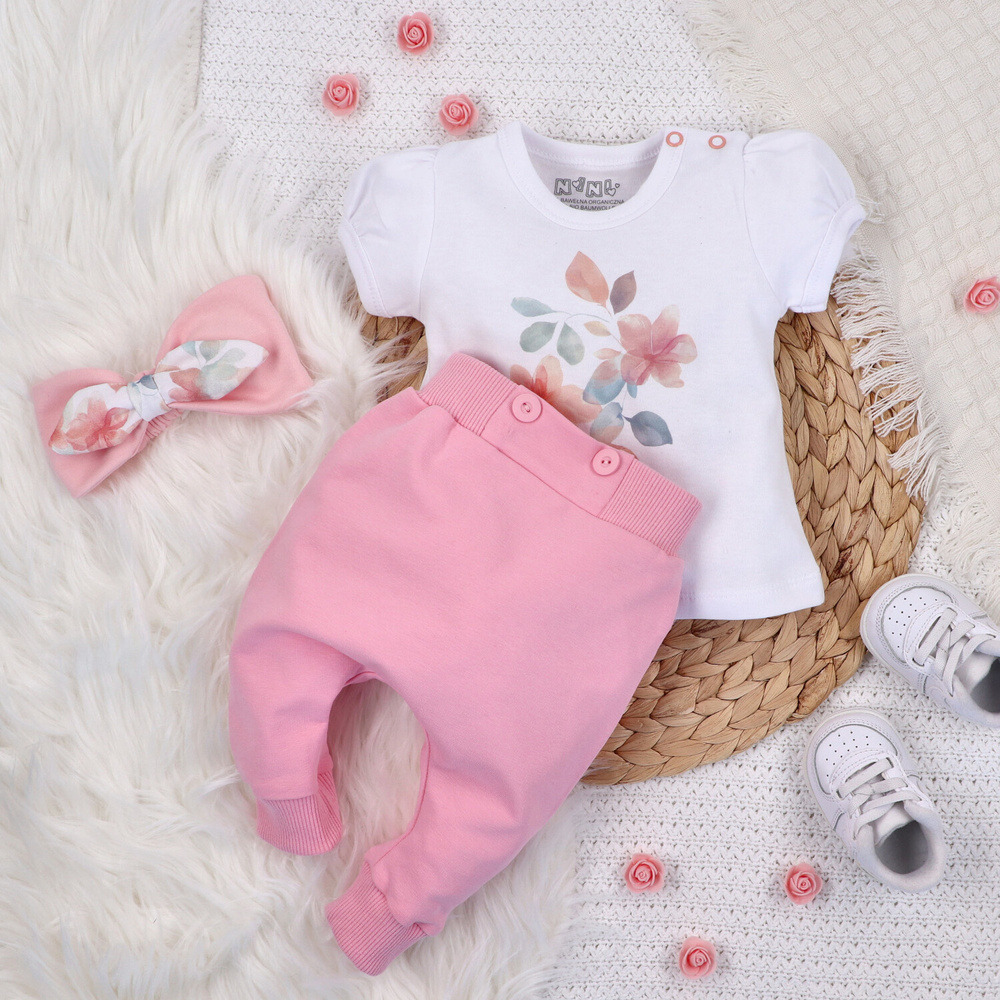 ABN-5422 Kolorowe kwiatki Bluzka z bawełny organicznej Nini biały