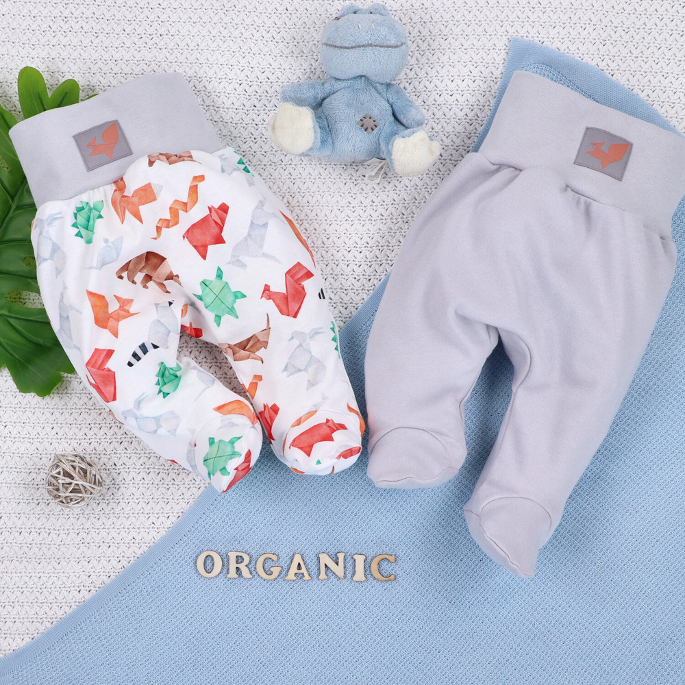 Półśpiochy niemowlęce uszyte z miękkiej i przyjemnej w dotyku bawełny organicznej. W pasie półśpiochy wszyty mają bezuciskowy ściągacz, który nie uwiera brzuszka dziecka. Mamy chętnie wybierają półśpiochy niemowlęce dla swoich maluszków. Plusem są zakryte stopki maluszka, które będą ochraniane przed chłodem.