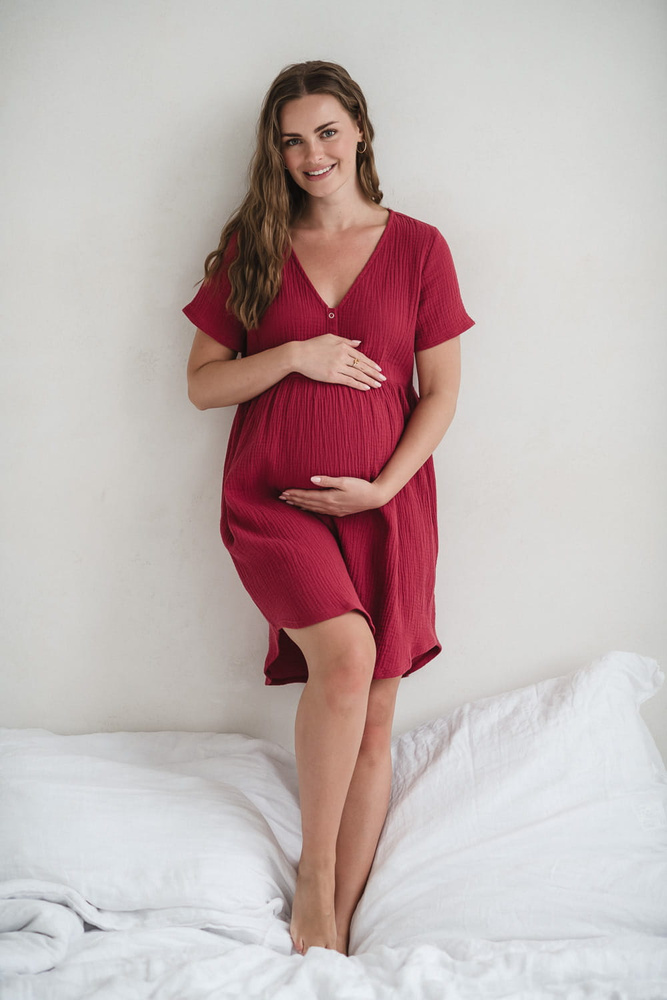 Aurora muślinowa koszula nocna ciążowa i do karmienia Milk&Love malinowy