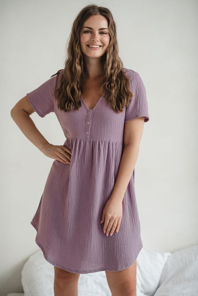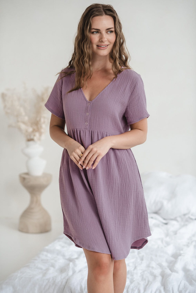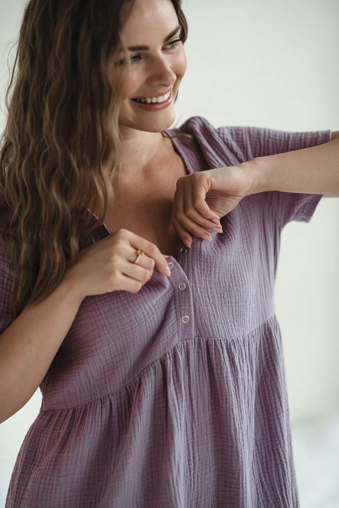 Aurora muślinowa koszula nocna ciążowa i do karmienia Milk&Love lawendowy