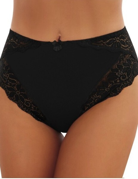 Zabudowane, wysokie figi damskie. Wykonane z gładkiej bawełny w połączeniu z ażurową koronką