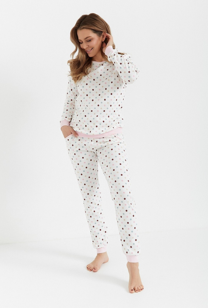 435 Piżama damska Cana  Interlock ecru – bawełniana, z długim rękawem i spodniami