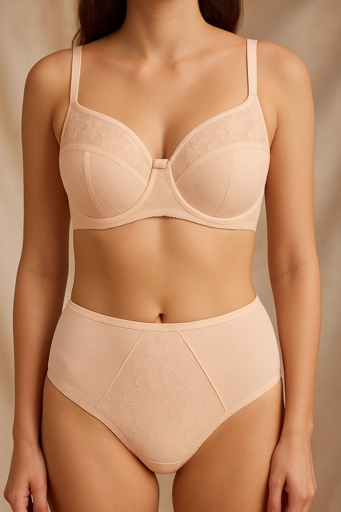 - Biustonosz – semi-soft, z koronką i fiszbinami. Komfort i elegancja na co dzień.