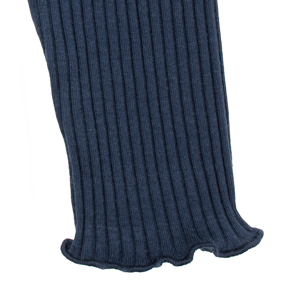 141524 Prążkowane legginsy dziewczęce Nicol – bawełna z elastanem, falbanka, granatowe