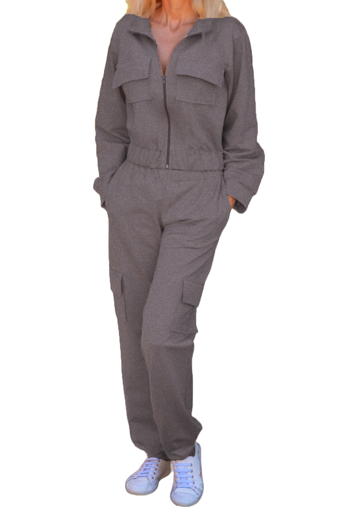 Dres damski Mili Mirale to wyjątkowy komplet zaprojektowany z myślą o kobietach ceniących komfort i styl. Wykonany z wysokiej jakości dzianiny bawełnianej (95% bawełna, 5% elastan), zapewnia pełną swobodę ruchów i doskonałe dopasowanie do sylwetki. Bluza zapinana na zamek z efektownymi kieszeniami na piersiach oraz spodnie typu cargo z dużymi bocznymi kieszeniami nadają całości modny, lekko sportowy charakter. Elastyczny pas spodni podkreśla talię, a wygodne nogawki świetnie układają się na nodze.