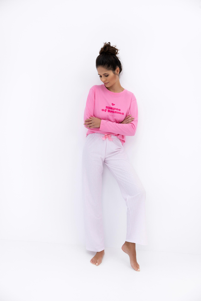 Malaya Piżama damska Sensis – bawełniana koszulka i długie spodnie z kokardką