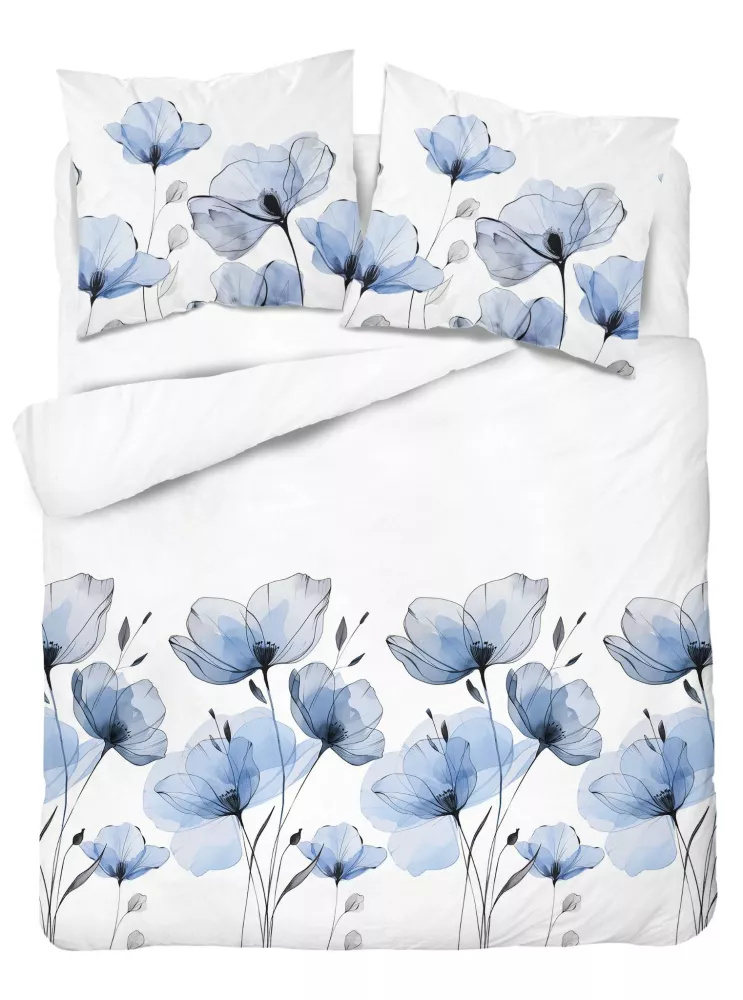 5496 A Pościel bawełniana biała w akwarelowe kwiaty błękitne Naturalis– Detexpol