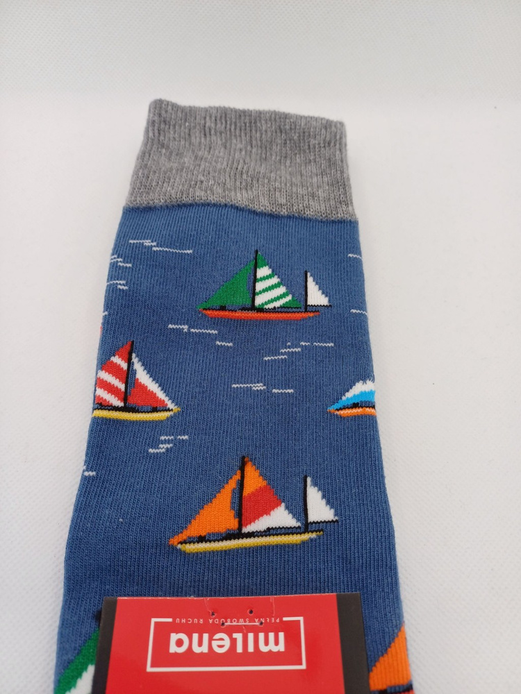 Milena Avangard 0125-117 – Męskie skarpety bawełniane „Żaglówki” | Polska produkcja - jeans