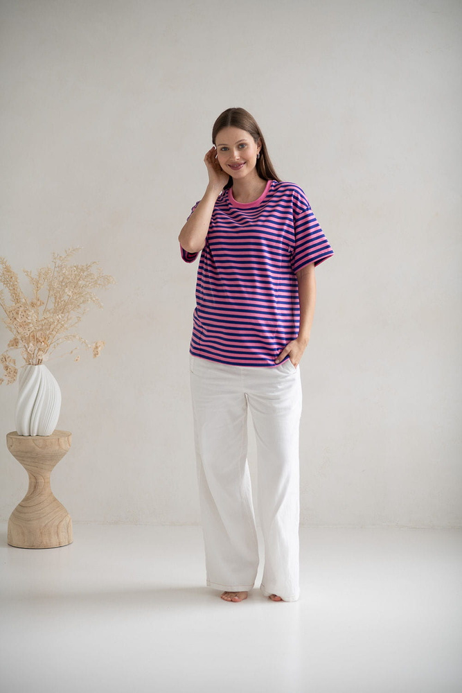 Mamahood T-shirt ciążowy i do karmienia Milk&Love różowo-niebieskie paski – wygodny i stylowy