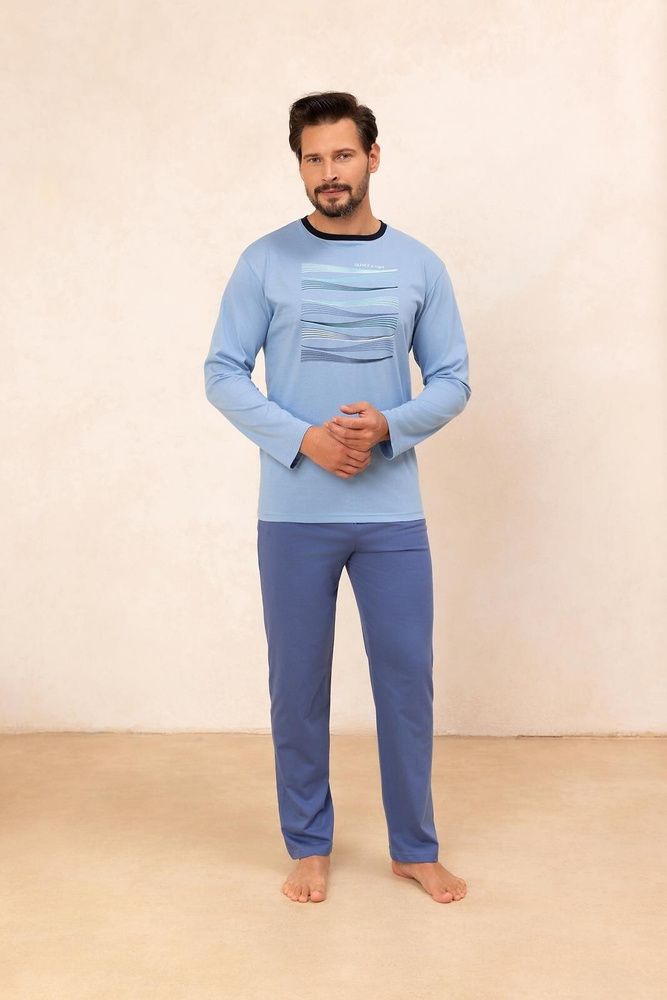Regina 492 niebieska – męska piżama bawełniana z długim rękawem, klasyczny fason