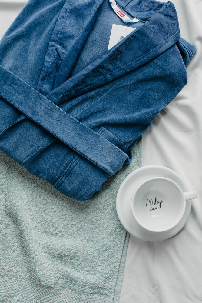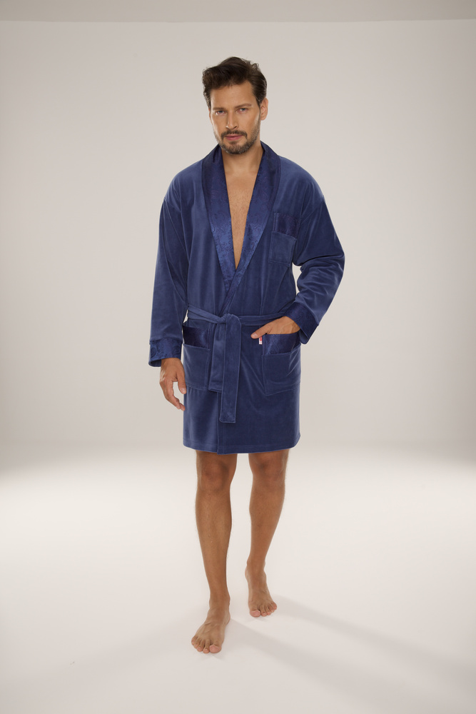 866 Noble Szlafrok męski welurowy De Lafense – krótki, elegancki, bawełna - jeans