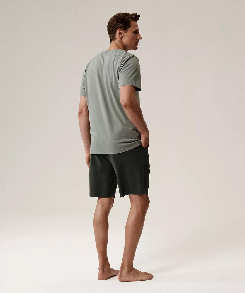 Piżama męska NMP-396 –zielony/khaki  bawełna, krótki rękaw, lekka i wygodna na lato