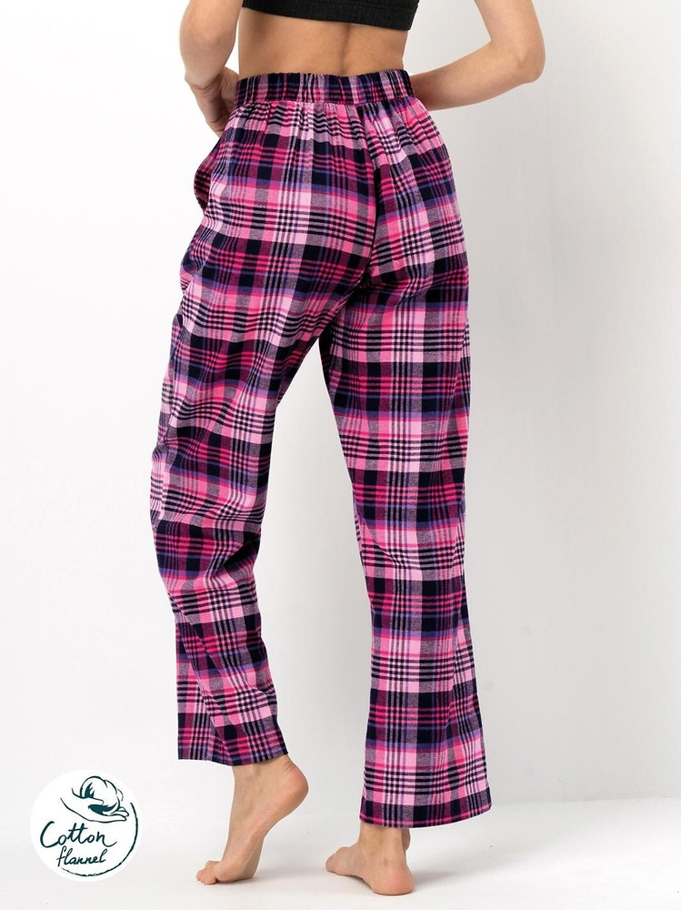 LHE 490 Spodnie piżamowe damskie Key fuksjowe – flanela bawełniana w kratę