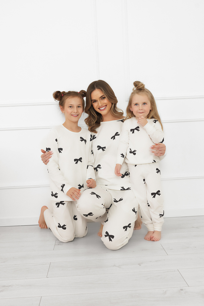 Model w kolorze ecru został ozdobiony subtelnym wzorem kontrastowych, czarnych kokardek, które dodają całości wyjątkowego charakteru. Luźniejszy fason zapewnia swobodę ruchów, a sportowe wykończenia nadają nowoczesnego wyglądu.