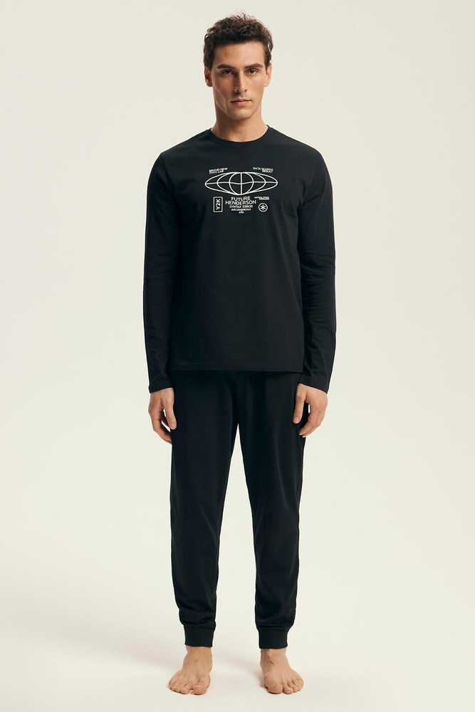 Piżama męska Henderson Core 43469 Loger czarna– bawełna, długi rękaw, eleganckie opakowanie