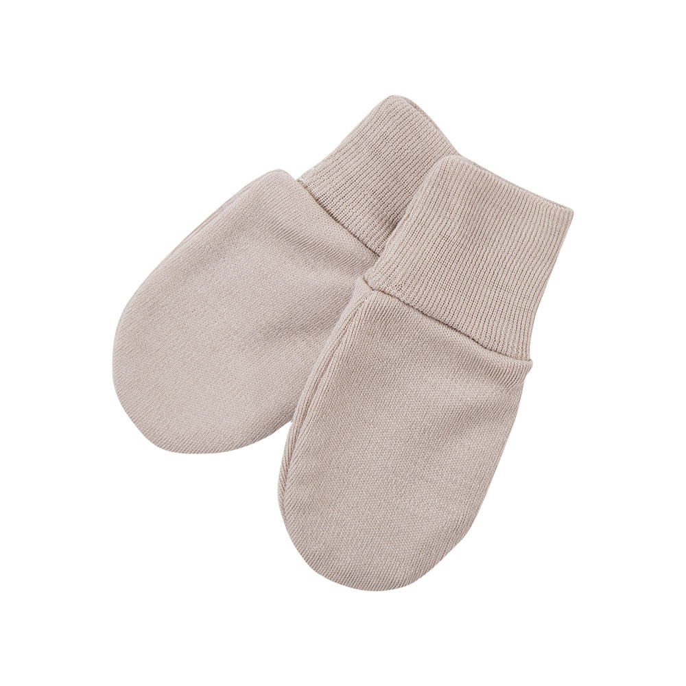 - Beżowe rękawiczki niemowlęce Eevi z wełny merino. Niedrapki dla dzieci 0–3 miesiące, miękkie i oddychające, chronią delikatną skórę.