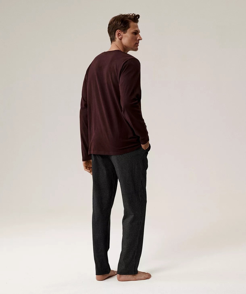 Piżama męska NMP-389 Atlantic –wino bawełna, długi rękaw, stylowy komplet na chłodne noce