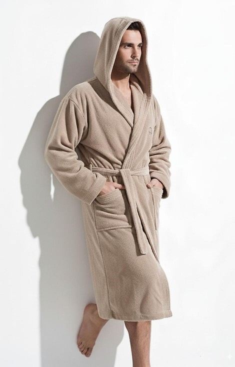 Iwo Szlafrok męski L&L cappucino– miękki z kapturem i kieszeniami