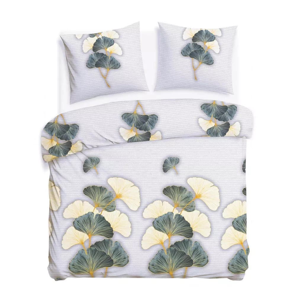 31510/1 Pościel flanelowa Flanelove Darymex szara zielona liście miłorzębu– komplet, 100% bawełna, ciepła i miękka