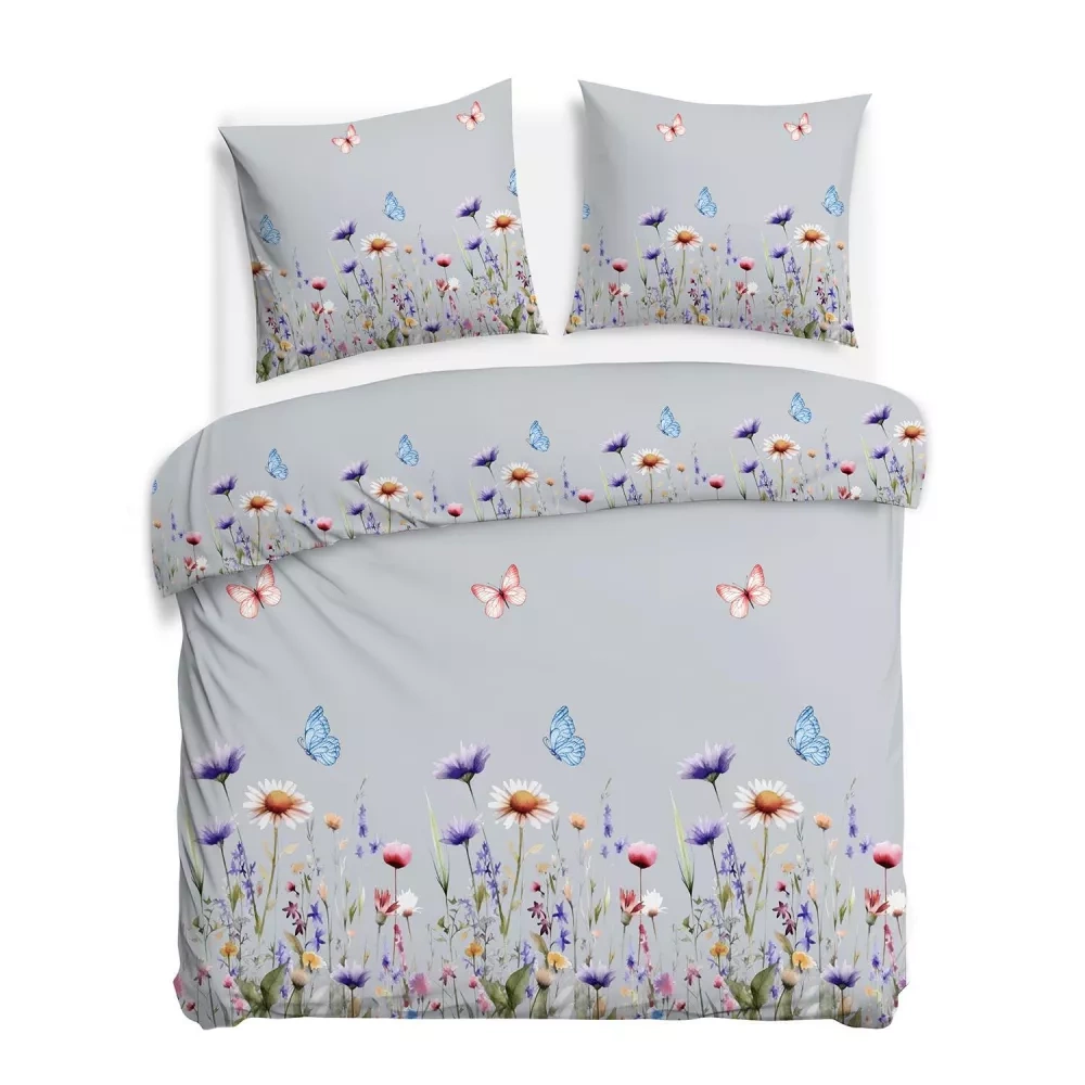31512/2 Pościel flanelowa Flanelove Darymex szara kolorowa kwiaty– komplet, 100% bawełna, ciepła i miękka