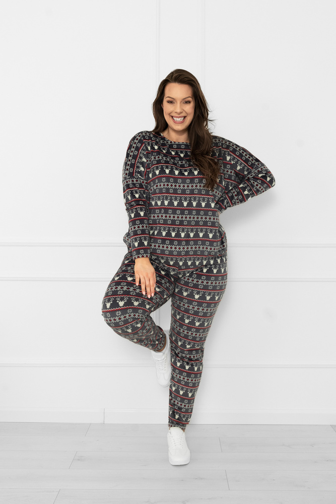 Komplet damski Navara – polarowy zestaw w świąteczny wzór z reniferami Italian Fashion - grafitowy