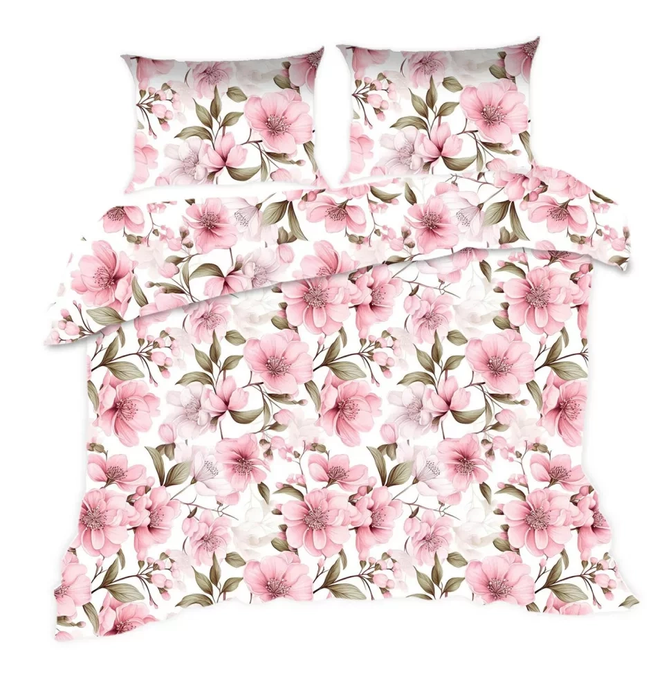 1893N Pościel bawełniana Classic E24 Karo kwiaty pudrowa różowa – 100% bawełna, trwała, kolorowa, komplet 2-częściowy