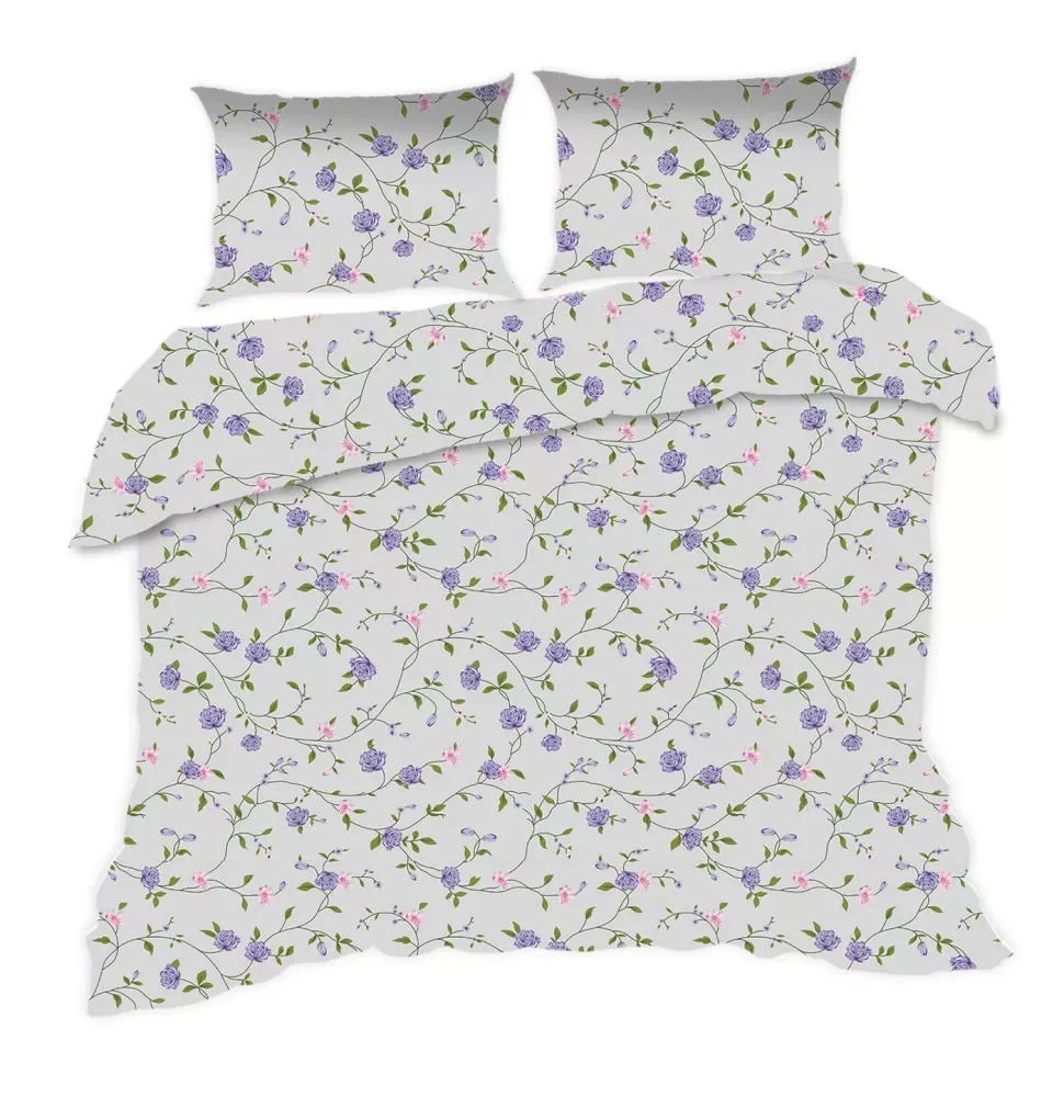 1668N Pościel bawełniana Classic E24 Karo kwiaty szara fioletowa – 100% bawełna, trwała, kolorowa, komplet 2-częściowy