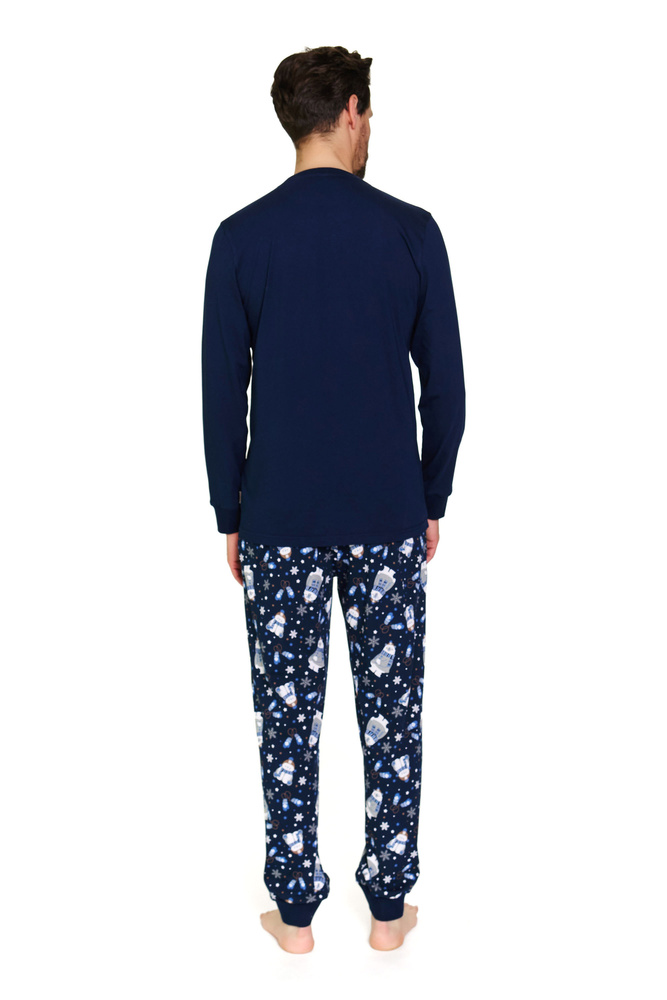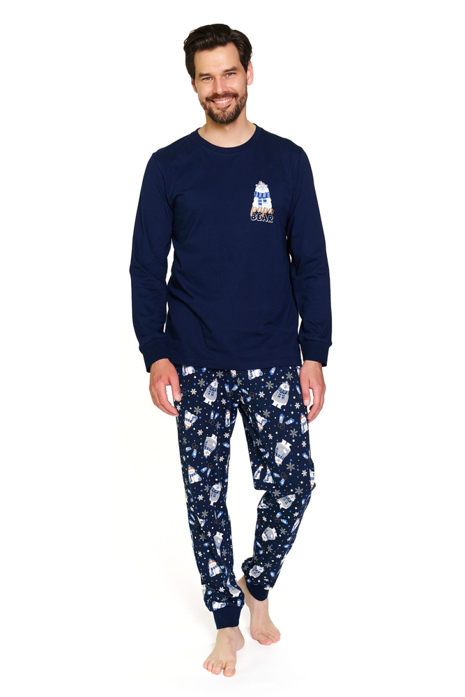 • Piżama męska Doctor Nap 7338 Cozy Bear. Koszulka z długim rękawem i nadrukiem, spodnie we wzór zimowy. 100% bawełna.