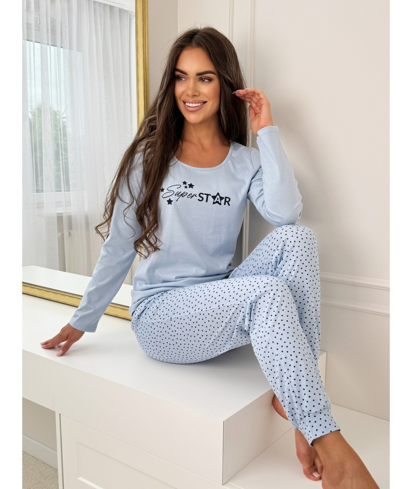 Piżama damska Donna Star Long  niebieska– bawełna, długi rękaw, pakowana w foliowy worek