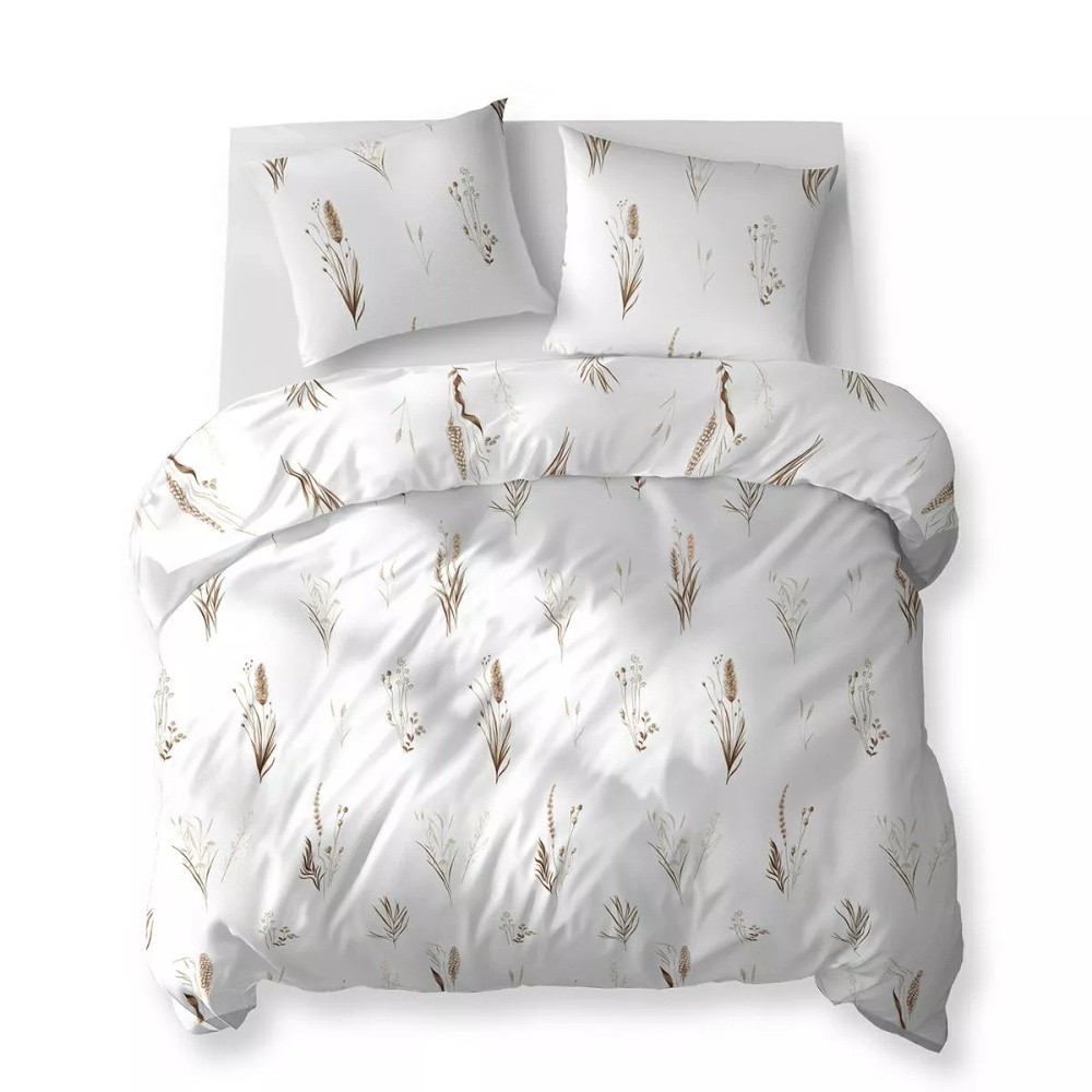 5771 B Pościel bawełniana Cotton Bloom Detexpol biała w trawy i kłosy brązowo-beżowe – 100% bawełna, dwustronna, polska produkcja