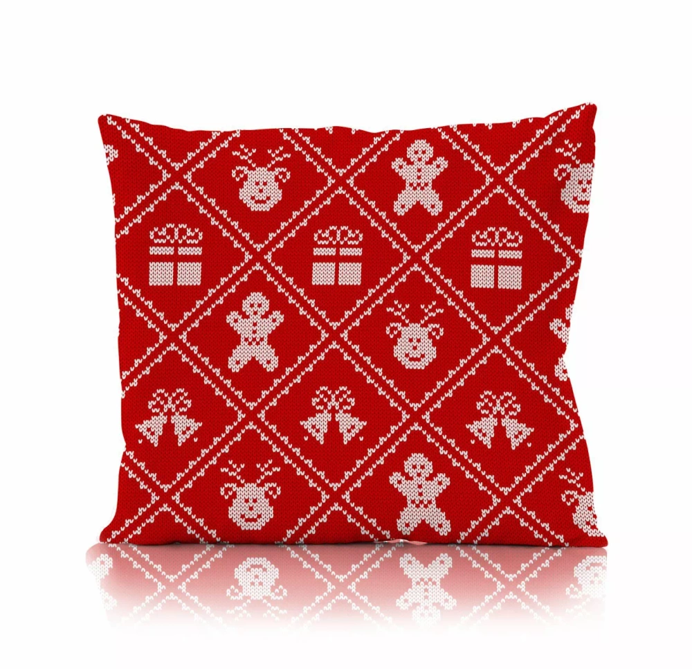 Poszewka świąteczna dekoracyjna Holly Jolly Faro – mikrofibra, czerwona ze swetrowym wzorem bożonarodzeniowym