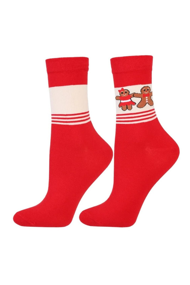 Skarpetki damskie Moraj CSLS300-046/2 czerwony/waniliowy– świąteczne, bawełniane, zestaw 2 par