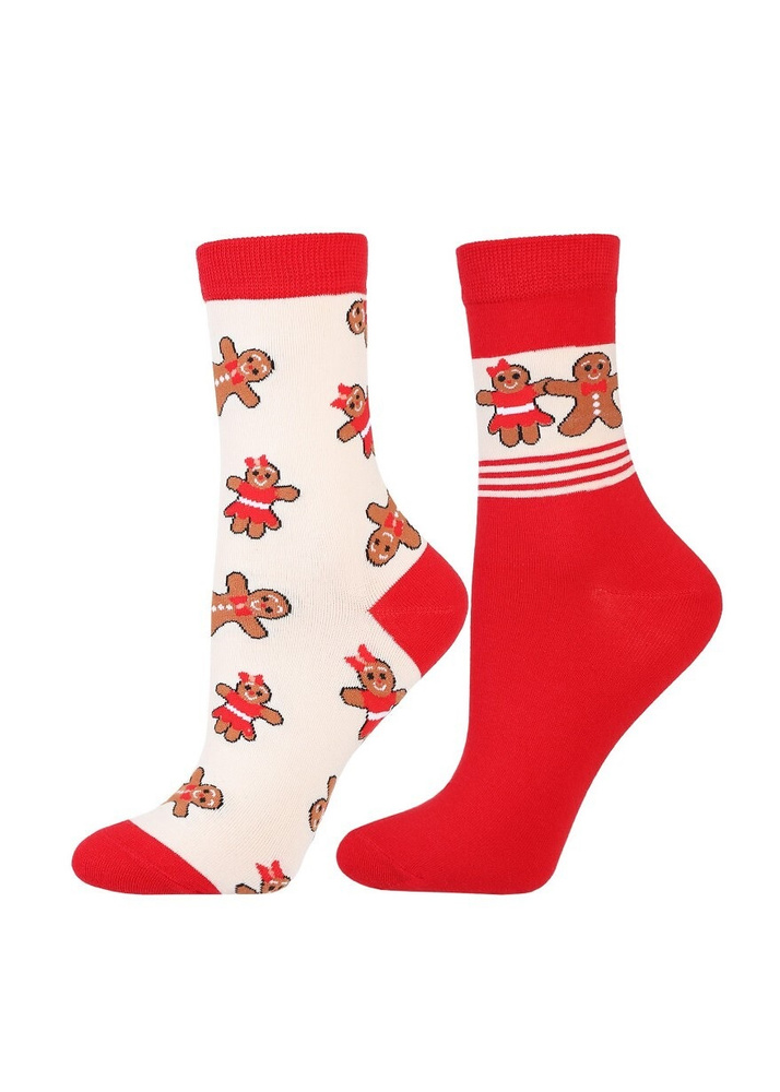 W zestawie znajdują się dwie pary – w kolorze czerwonym i waniliowym. Całość została przewiązana satynową kokardką, dzięki czemu komplet idealnie sprawdzi się jako prezent świąteczny dla bliskiej osoby.