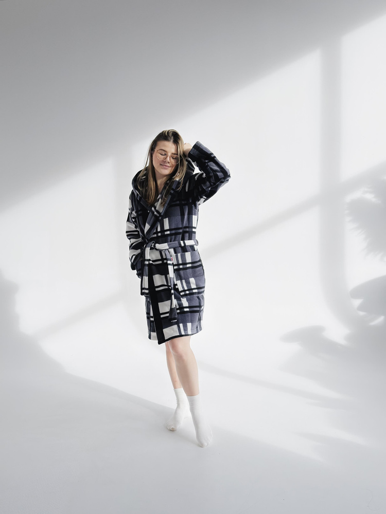 031 Kocyk Szlafrok De Lafense – ciepły polarowy szlafrok damski Super Cozy, szary