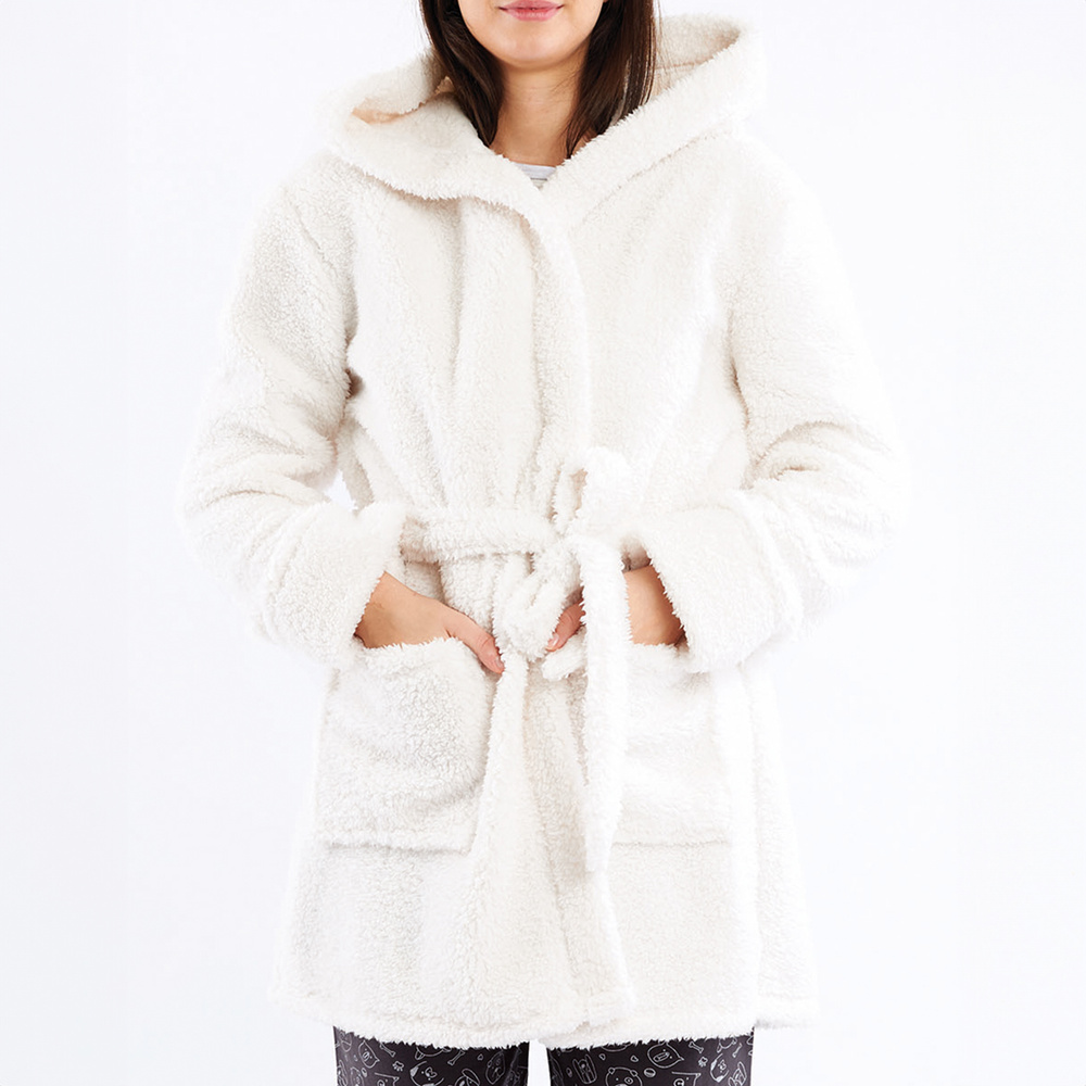 Igrid Szlafrok damski Sorbetto – biały, puszysty z kapturem misia