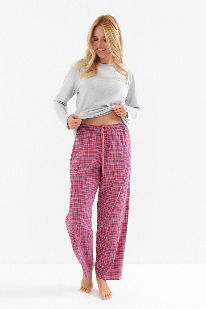 Piżama damska Taro Madlen 3512 – bawełniana, długi rękaw, spodnie w kratkę
