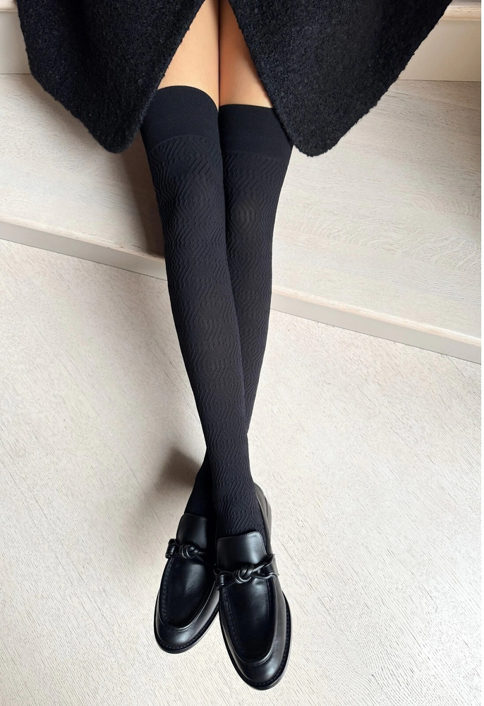 Dzięki nieuciskającemu ściągaczowi idealnie utrzymują się na nodze, nie powodując dyskomfortu nawet przy dłuższym noszeniu. To doskonały wybór do sukienek, spódnic oraz oversizowych swetrów – zawsze wtedy, gdy chcesz podkreślić nogi w stylowy i kobiecy sposób.
