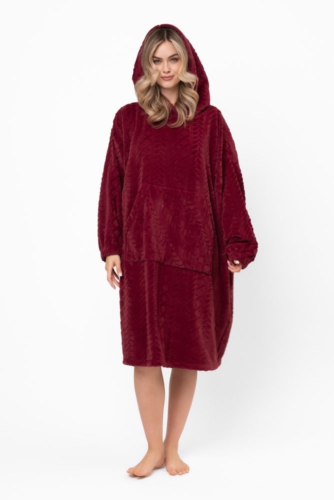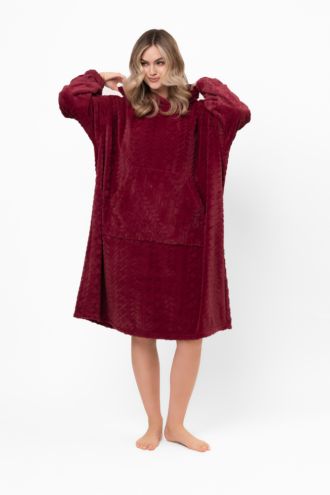 Reno Kocobluza Italian Fashion bordowa – oversize, miękki bipolar, unisex, z kapturem