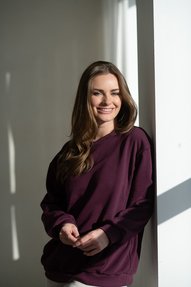 Bluza Milk It Easy! w kolorze mauve wine to idealny wybór dla kobiet, które przez całą ciążę i po porodzie chcą czuć się jednocześnie stylowo i komfortowo. Jej oversizowy krój zaprojektowano tak, aby harmonijnie dopasowywał się do zmieniającej się sylwetki. Niezależnie od etapu ciąży bluza nie opina, nie uciska i zapewnia całkowitą swobodę ruchu. Świetnie wygląda zarówno z legginsami ciążowymi, jak i spodniami z wyższym stanem.