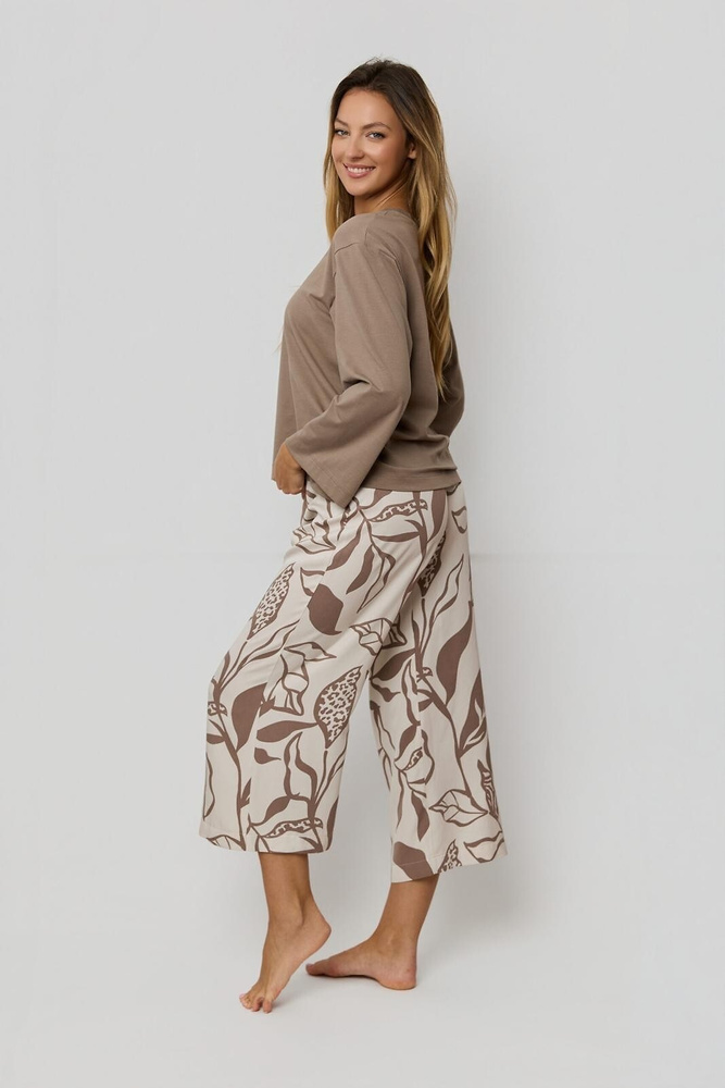 Piżama Damska Luna PS75 Mefemi by Nipplex mokka– Bawełniana Koszulka + Spodnie 7/8 z Wiskozy | Komfort Premium & Styl