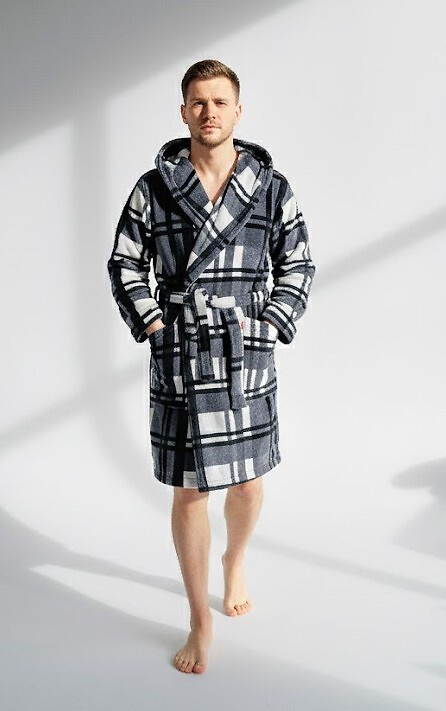 034 Kocyk Szlafrok Męski z Kapturem De Lafense – Ciepły, Miękki, Komfort Premium | Idealny do Domu i SPA